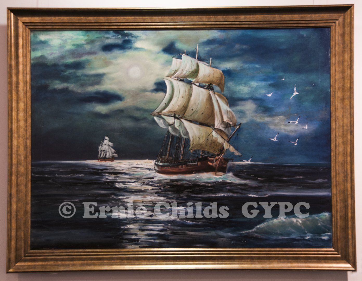Since that time it has been in constant demand, in its ornate Italian gilt frame, for many public exhibitions and displays. Examples of which are the Annual Great Yarmouth Maritime Festival; The Town Hall and The Minster Church of St Nicholas, Great Yarmouth.