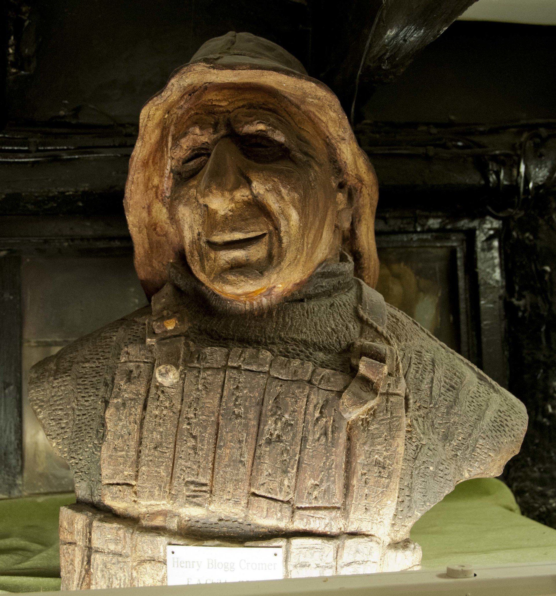 Ernie's life-size sculptured terracotta bust of Coxn. Henry Blogg.
